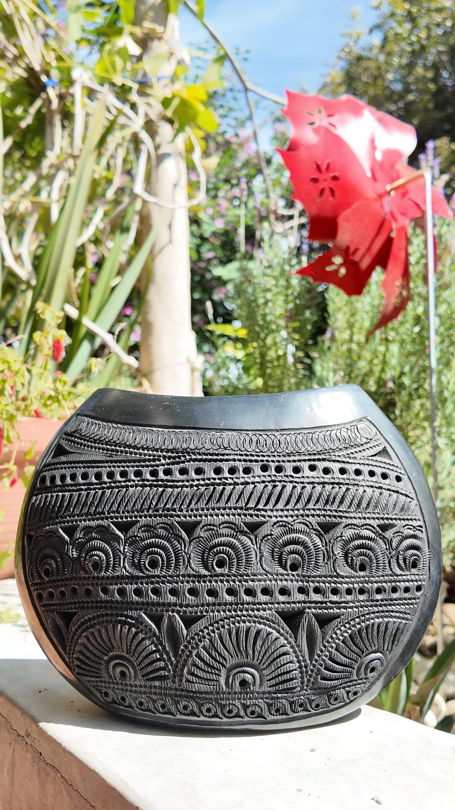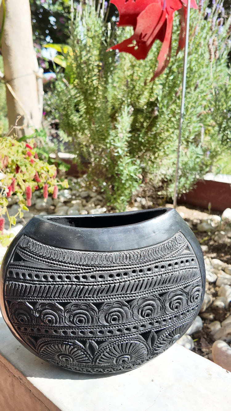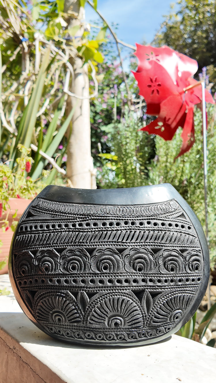 Florero Ostra G de barro negro