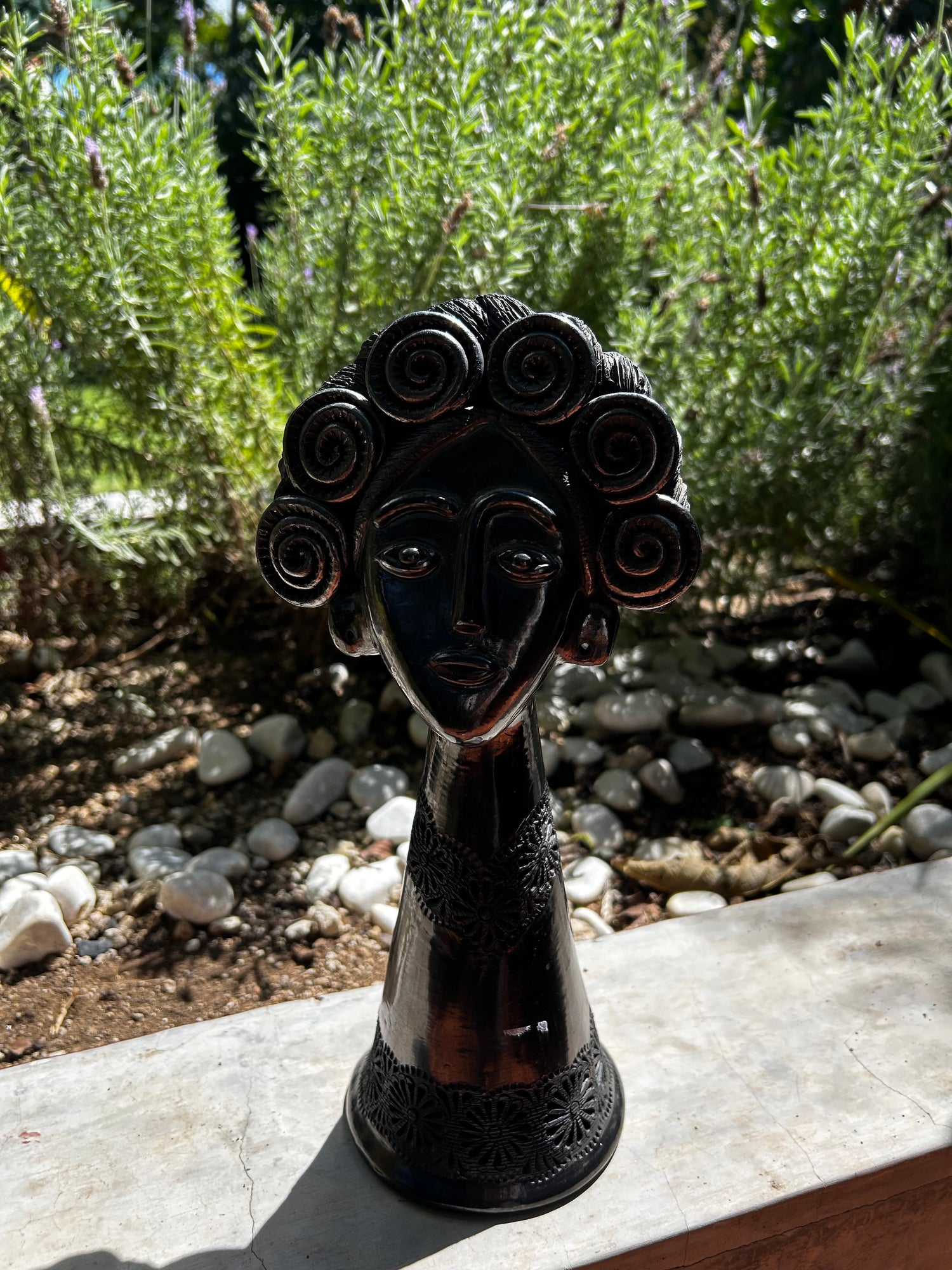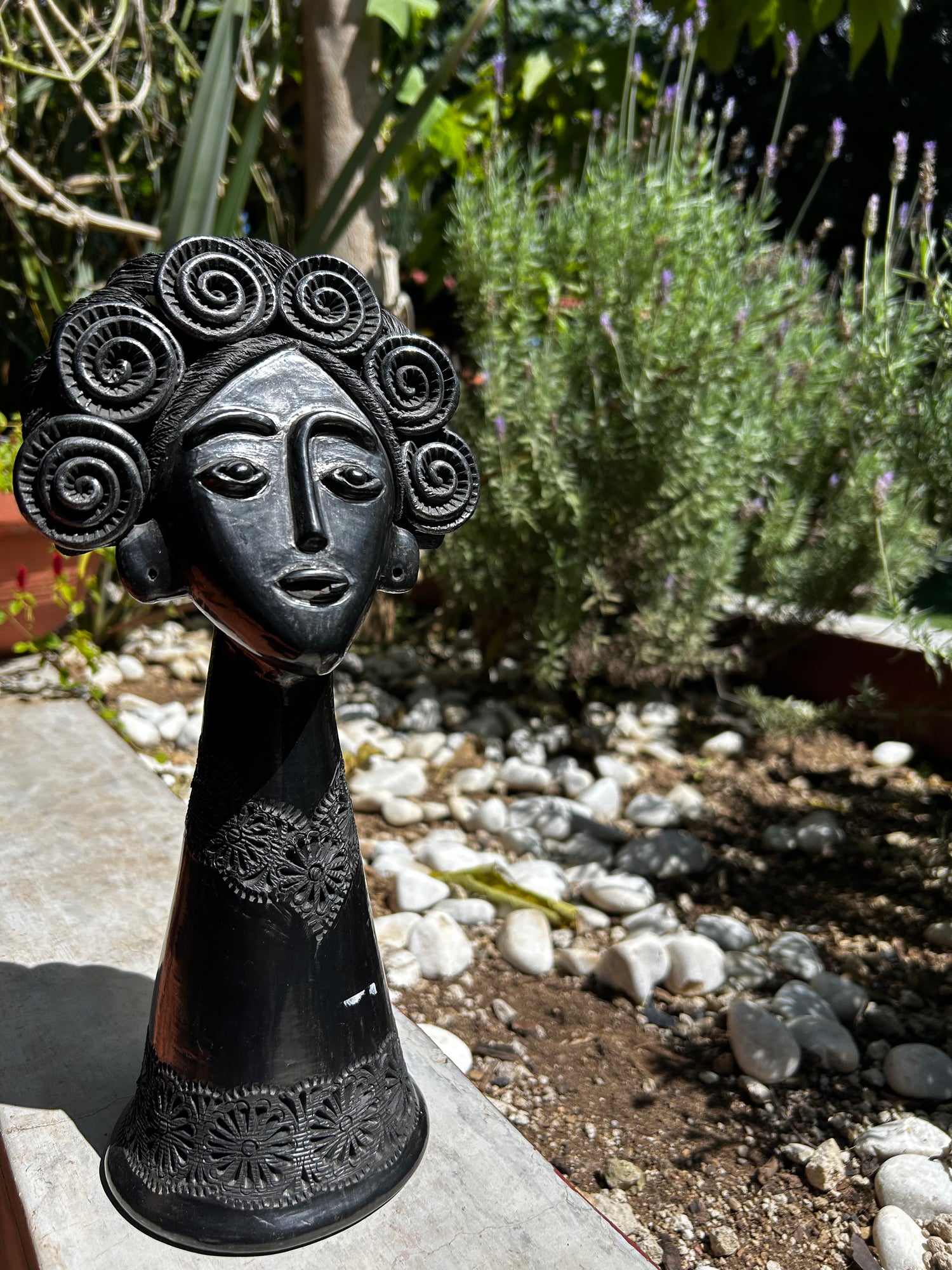 Muñeca G con flores de barro negro